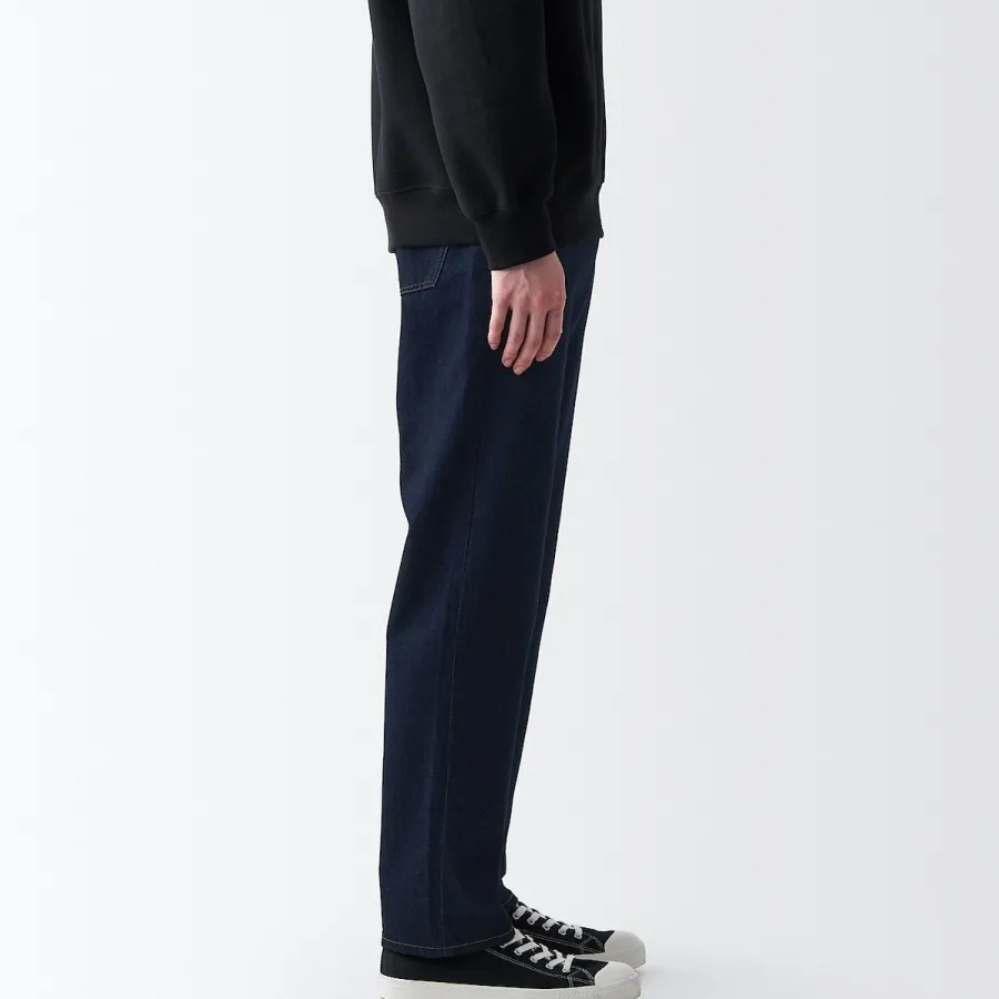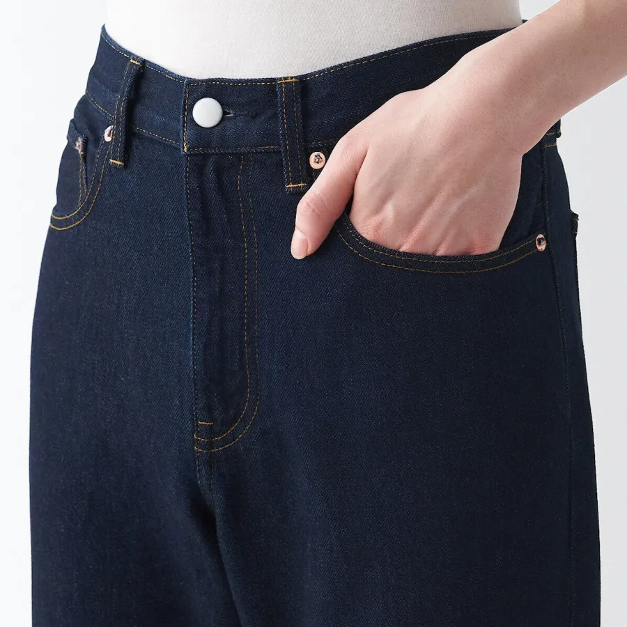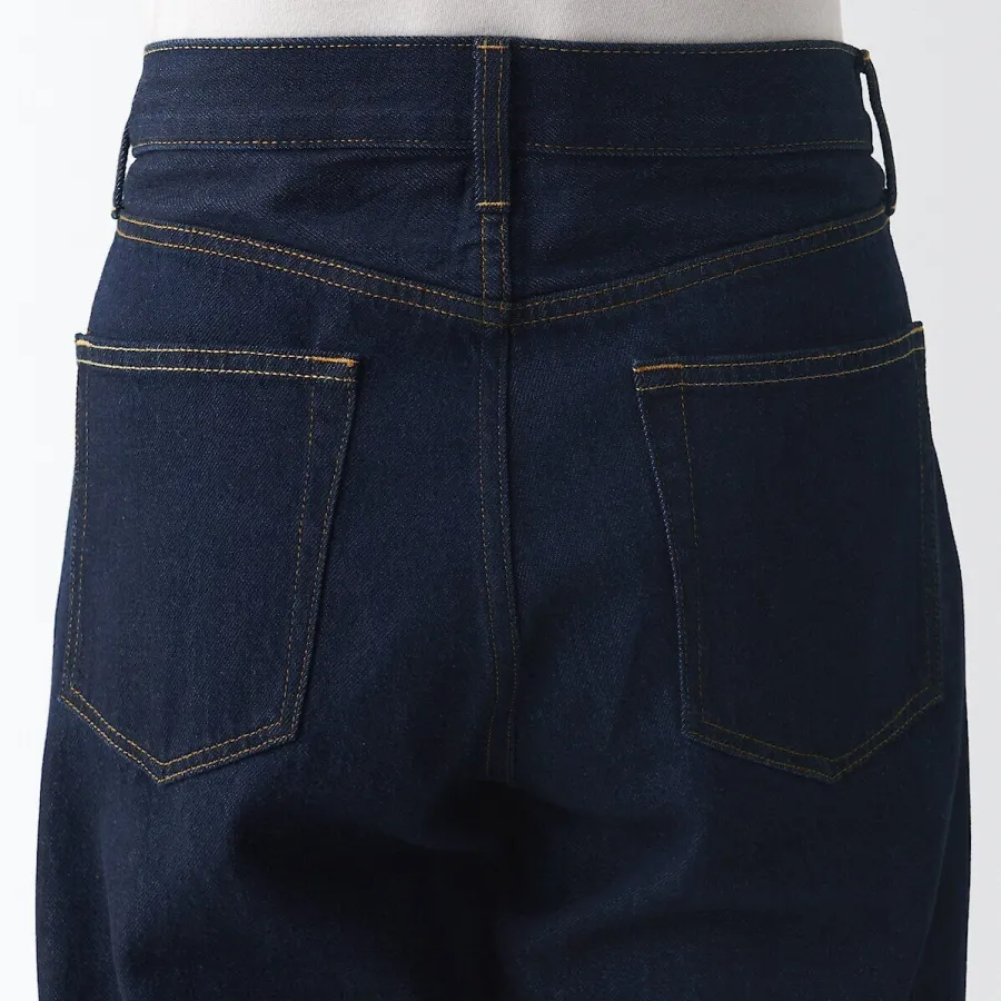 Made with organic cotton. We use an undyed, natural denim material to reduce wastewater from the regular denim washing process.