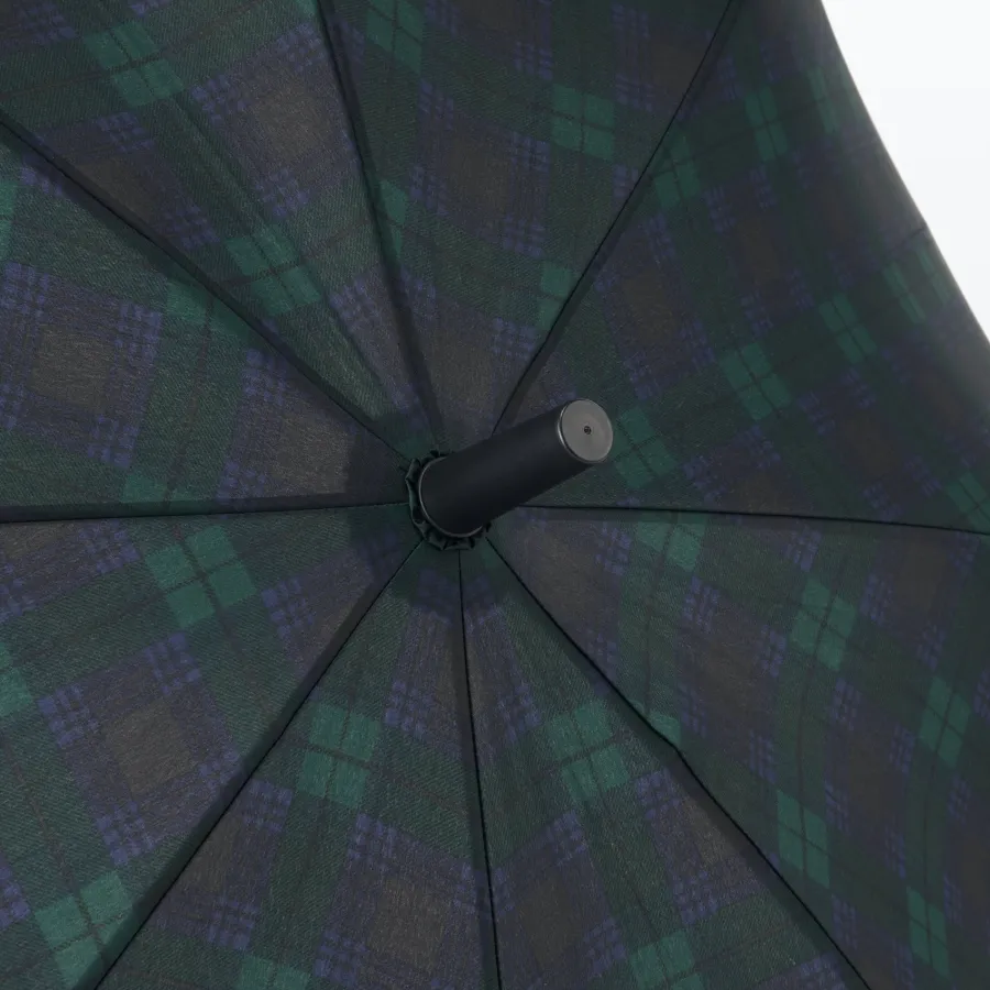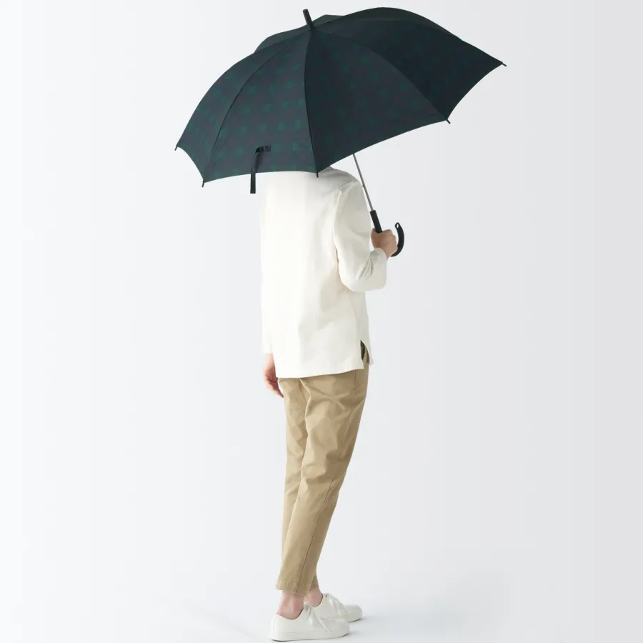 A sturdy umbrella that can be buttoned closed both ways. A marker (not included with the product) can be attached to the handle for easy identification.