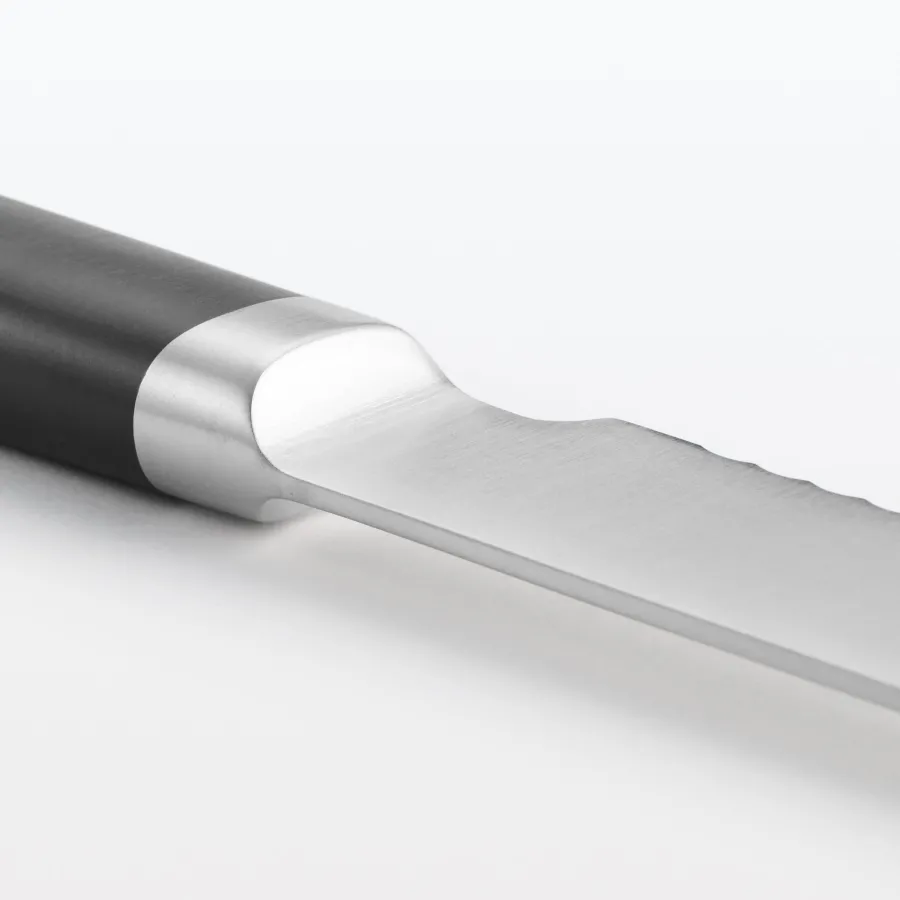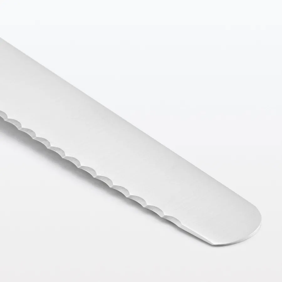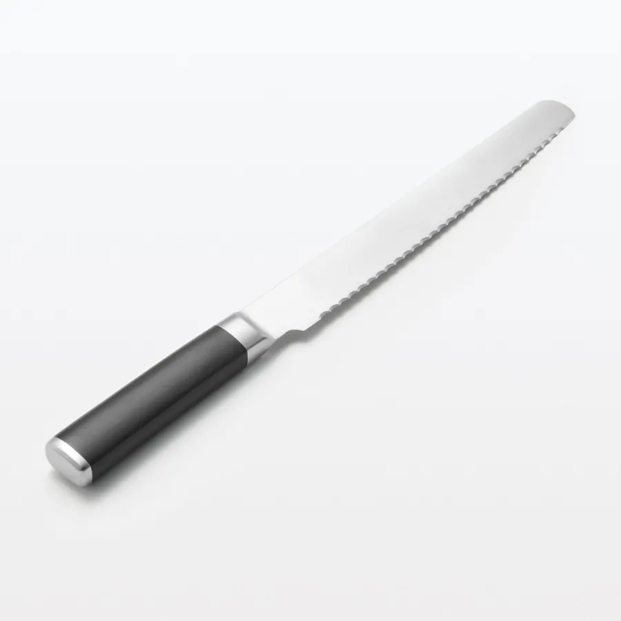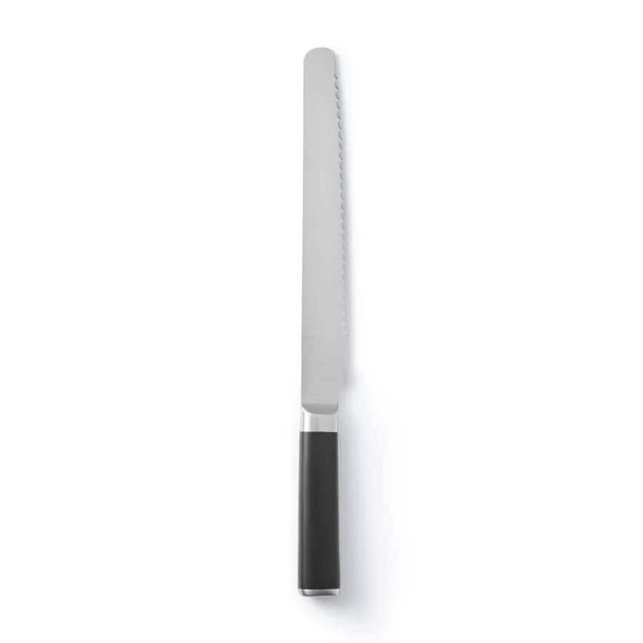 This bread knife is specifically designed with a long blade that allows for precise and even slices of bread. With this feature, you can easily cut through large pieces of bread without any hassle.