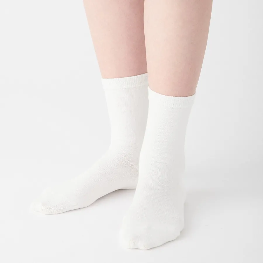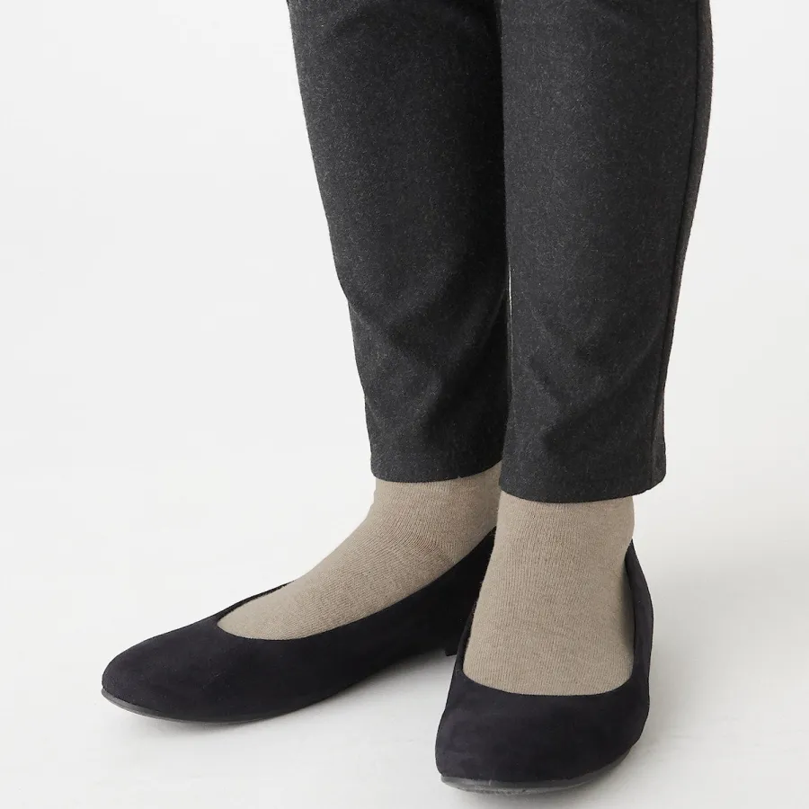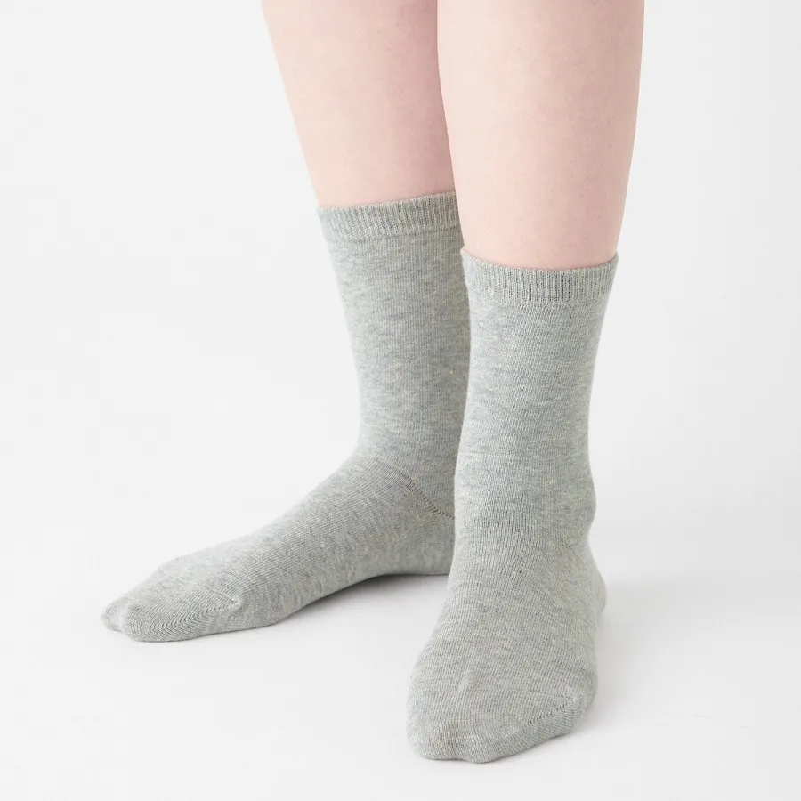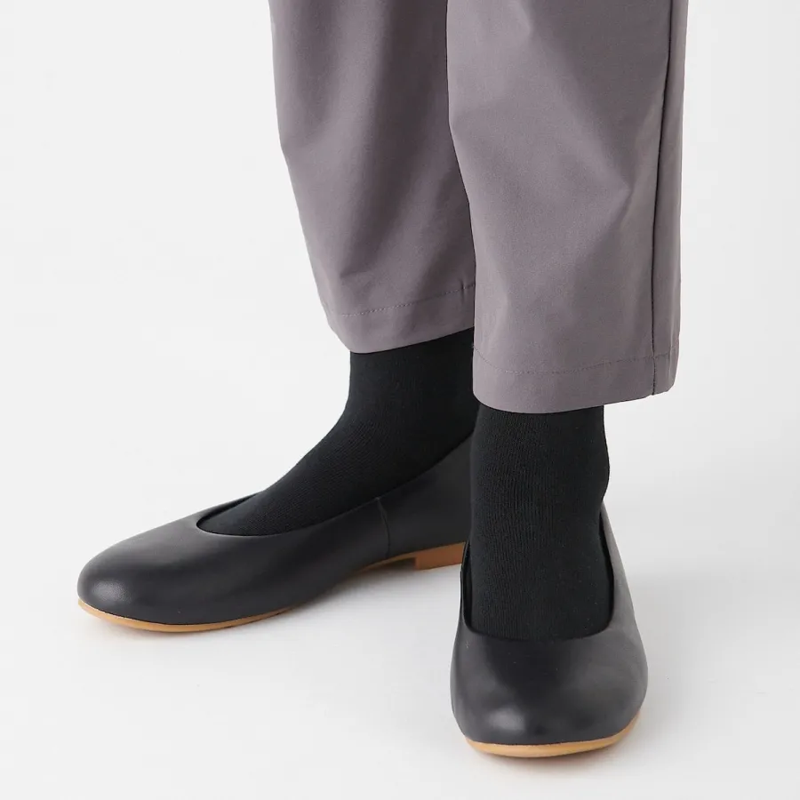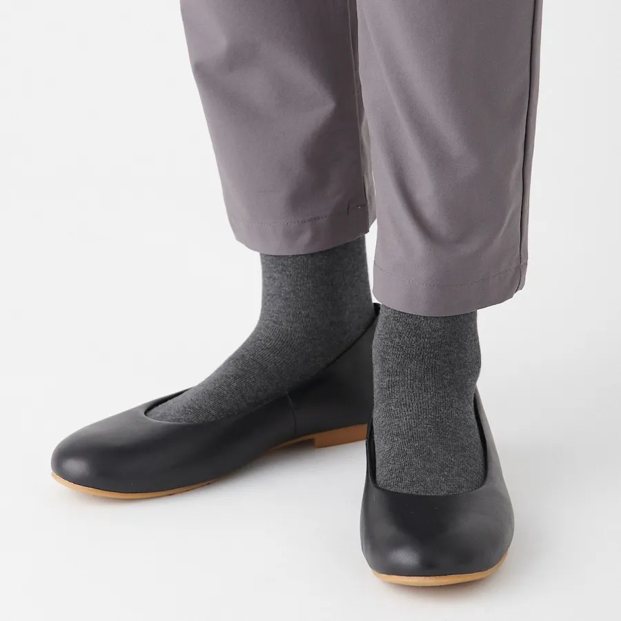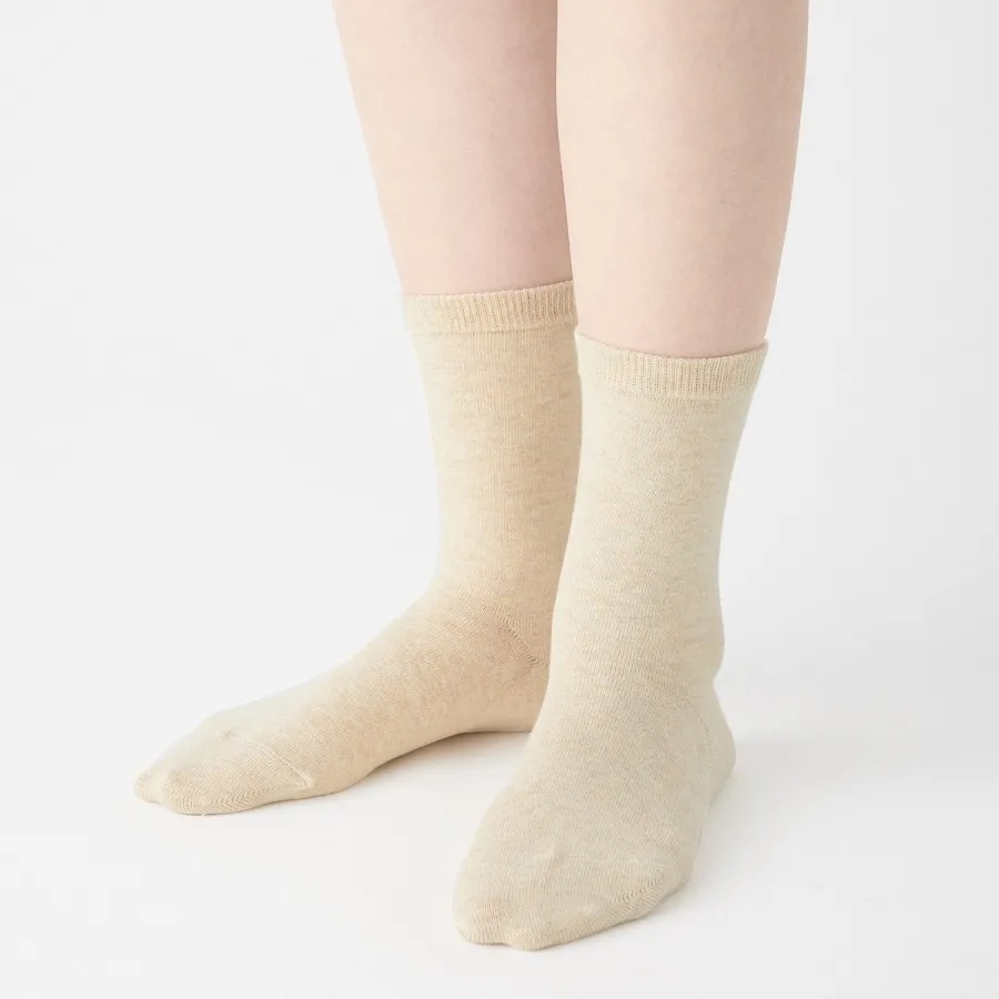 Rib socks with made with right angles to fit the heels. Combination of cotton and stretch thread made with organic cotton.