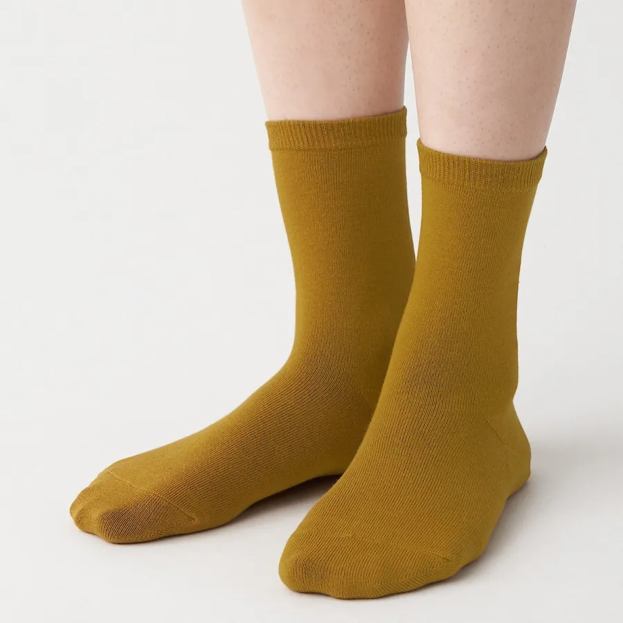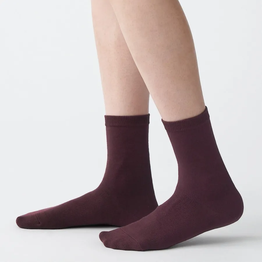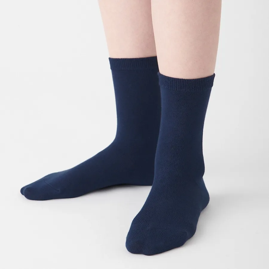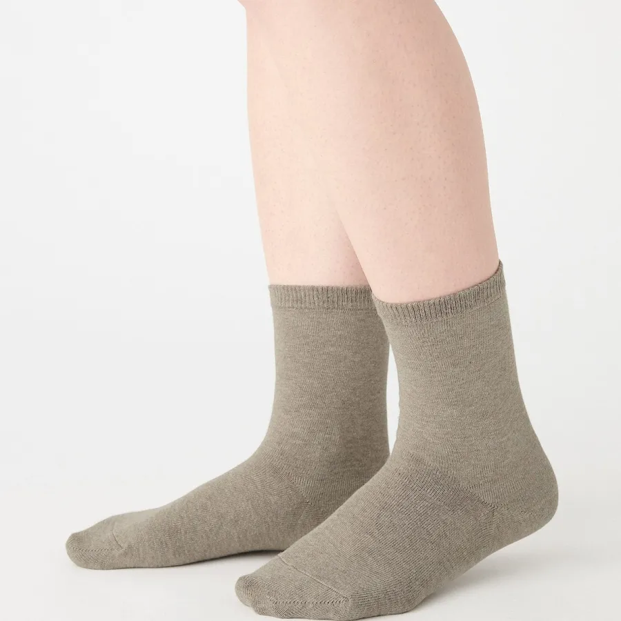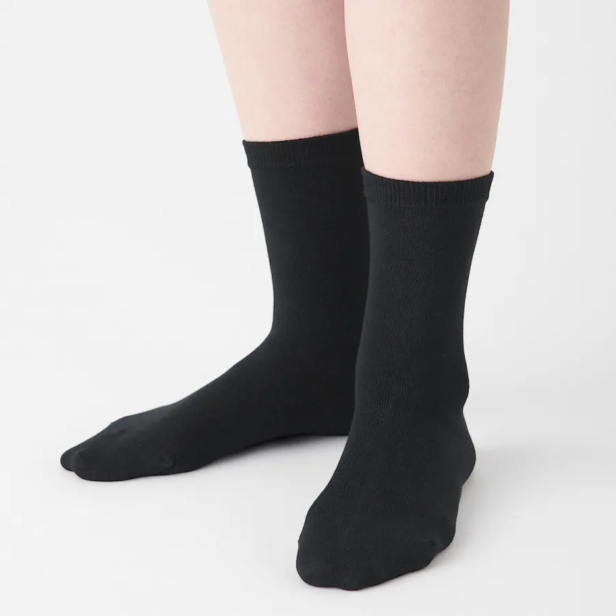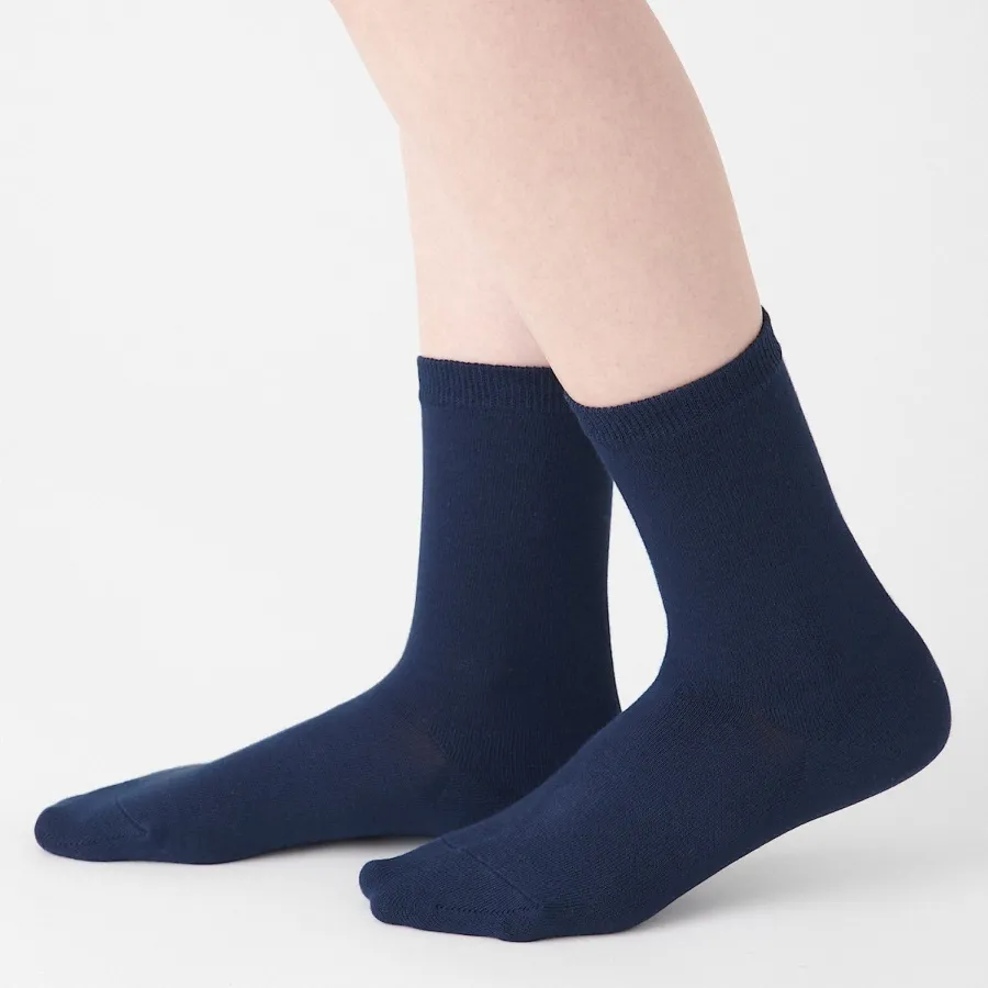 Rib socks with made with right angles to fit the heels. Combination of cotton and stretch thread made with organic cotton.