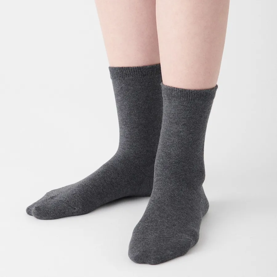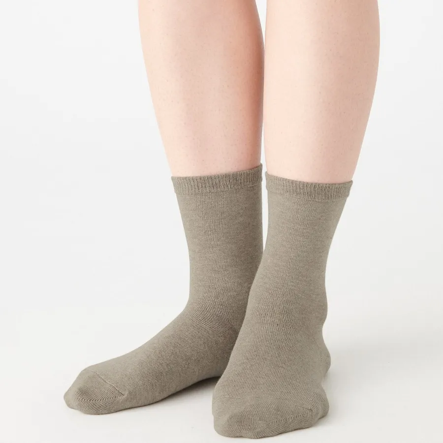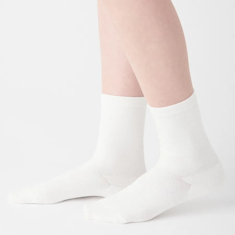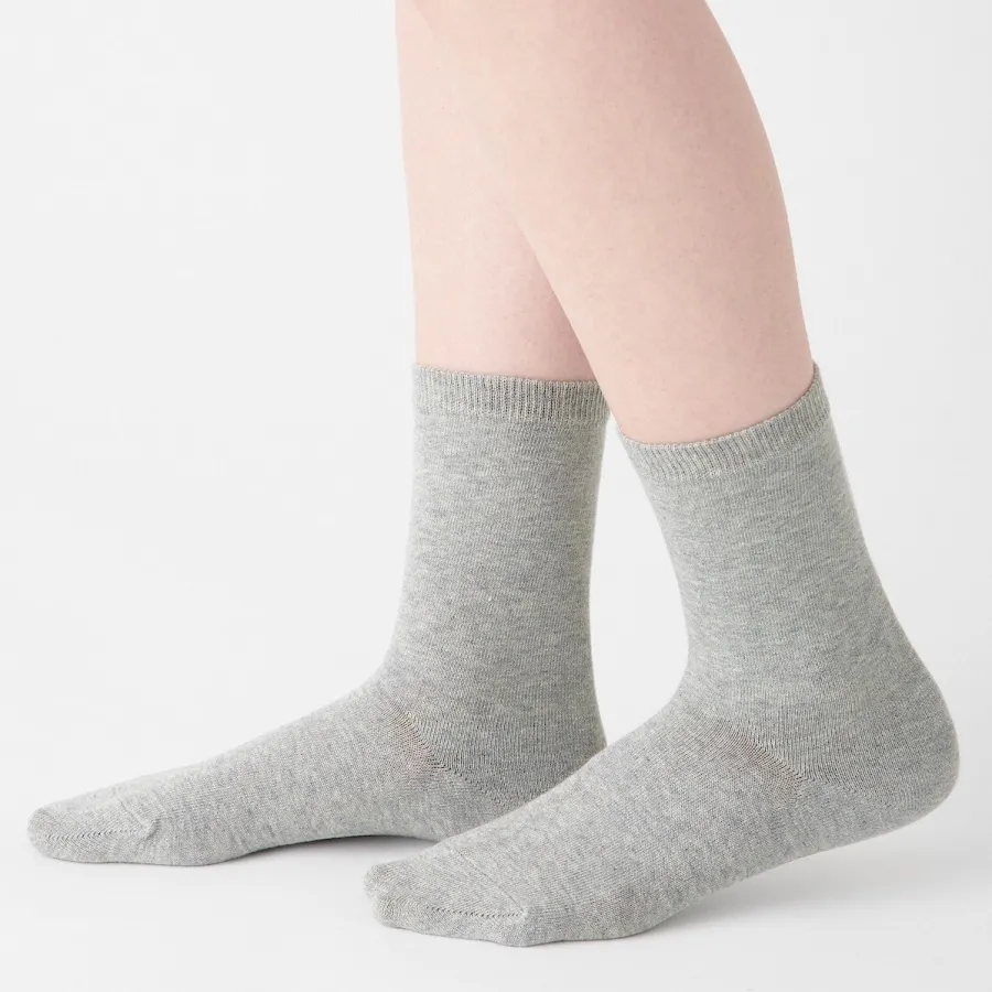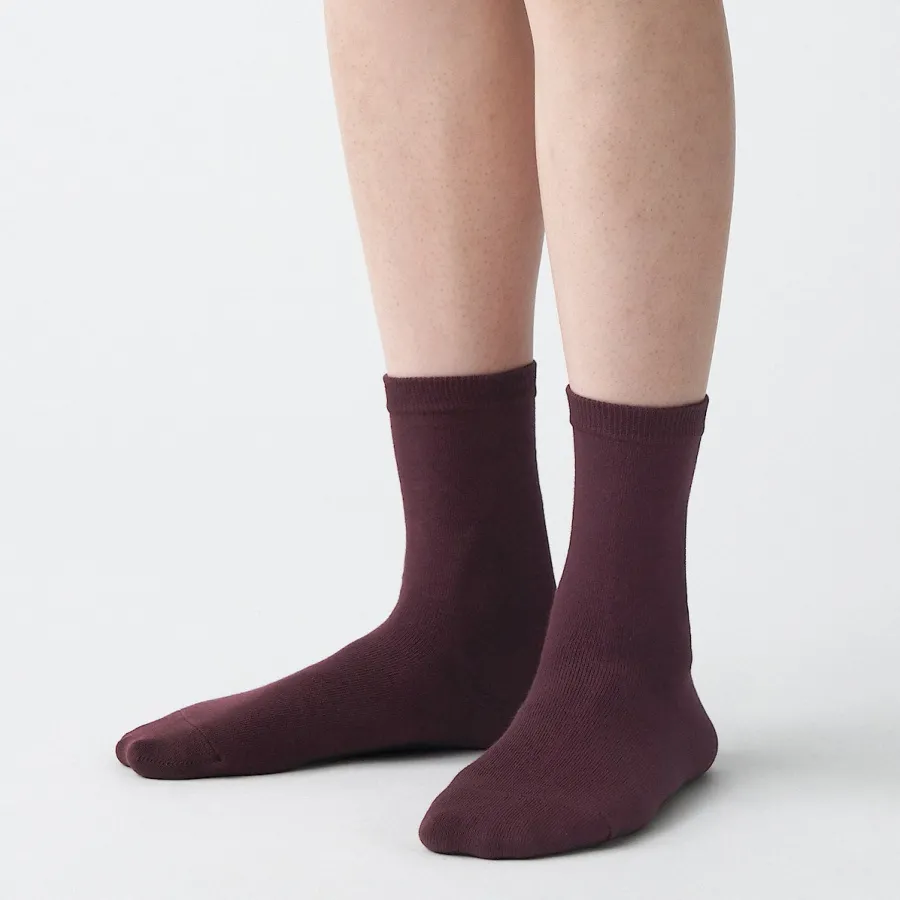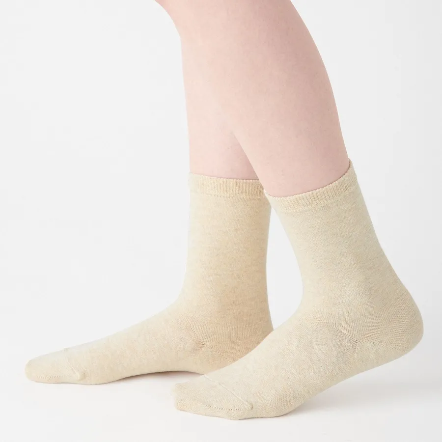 Rib socks with made with right angles to fit the heels. Combination of cotton and stretch thread made with organic cotton.