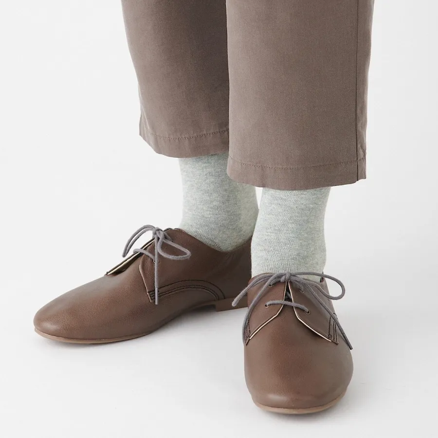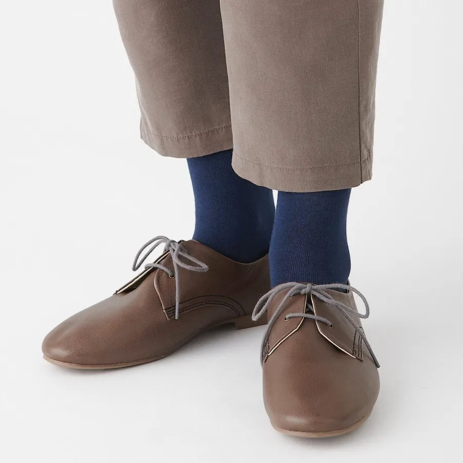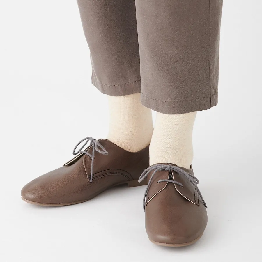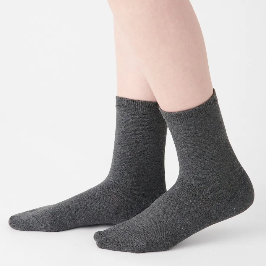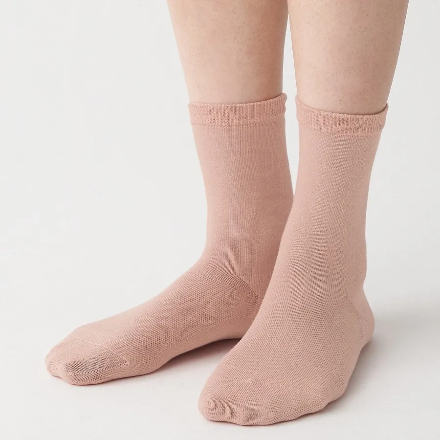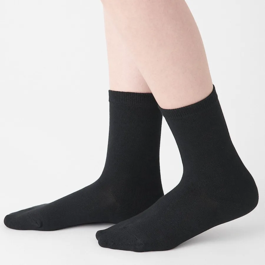 Rib socks with made with right angles to fit the heels. Combination of cotton and stretch thread made with organic cotton.