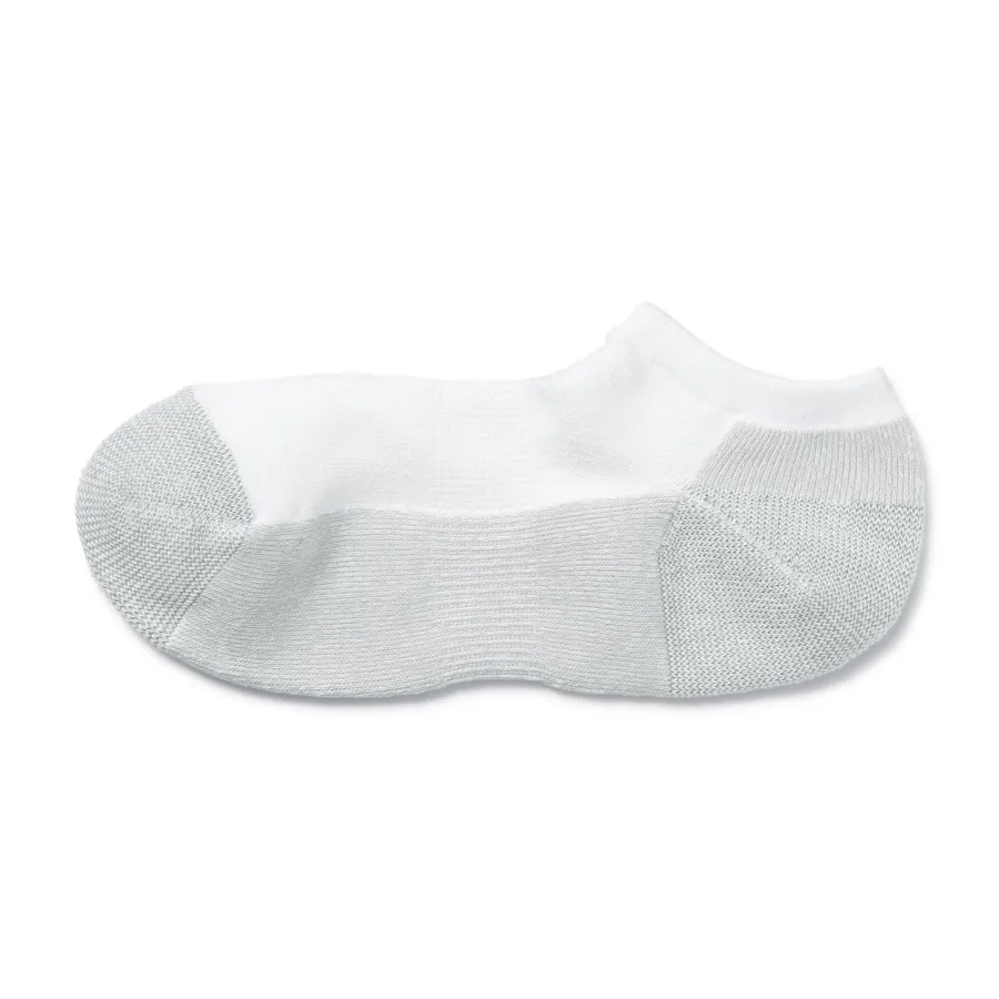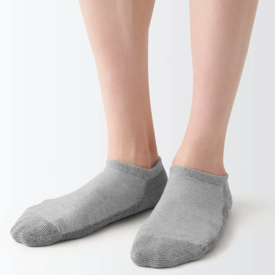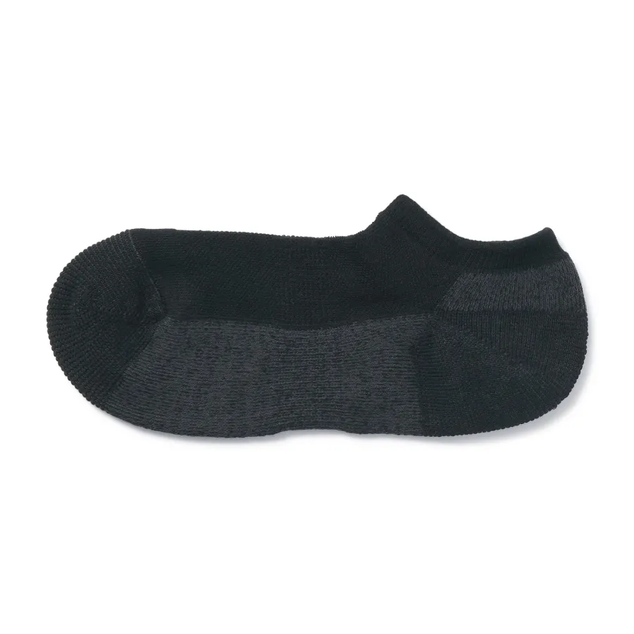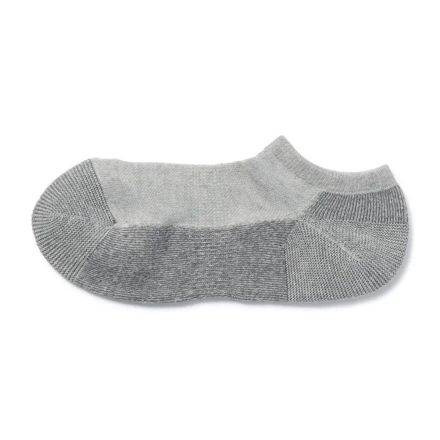 As the heel is at a right angle, the socks are knitted at a right angle so they can wrap comfortably around the heel and prevent the fabric from sagging and slipping off. Smooth textured pile on the sole.