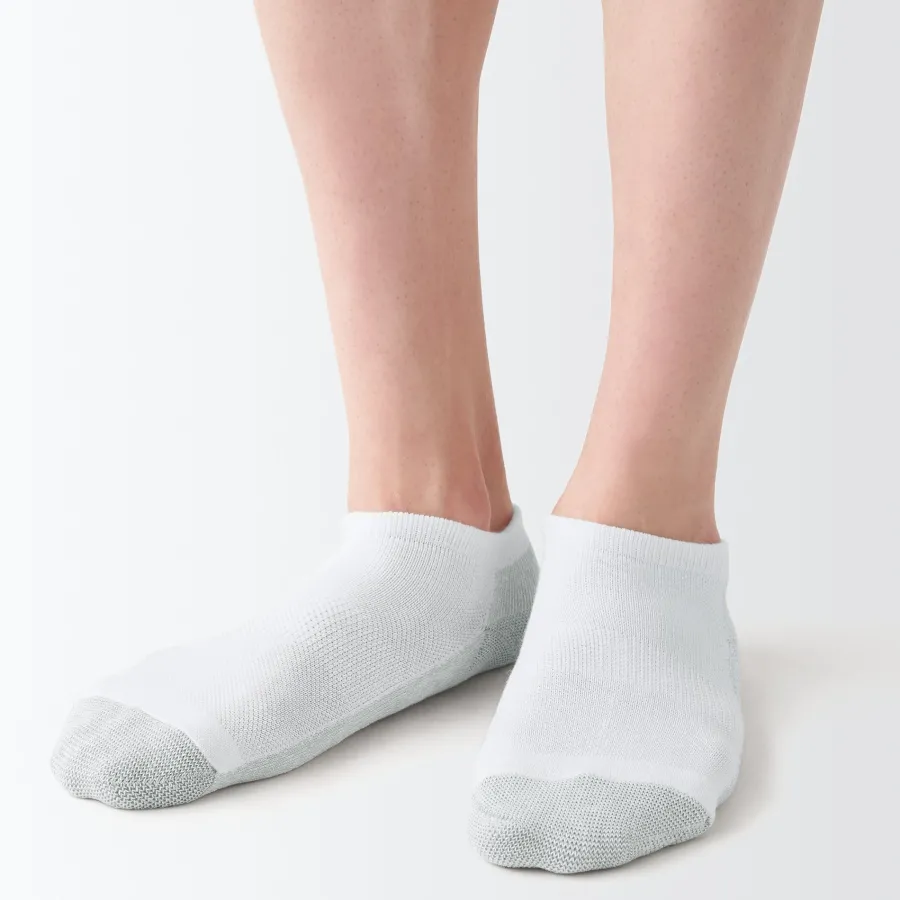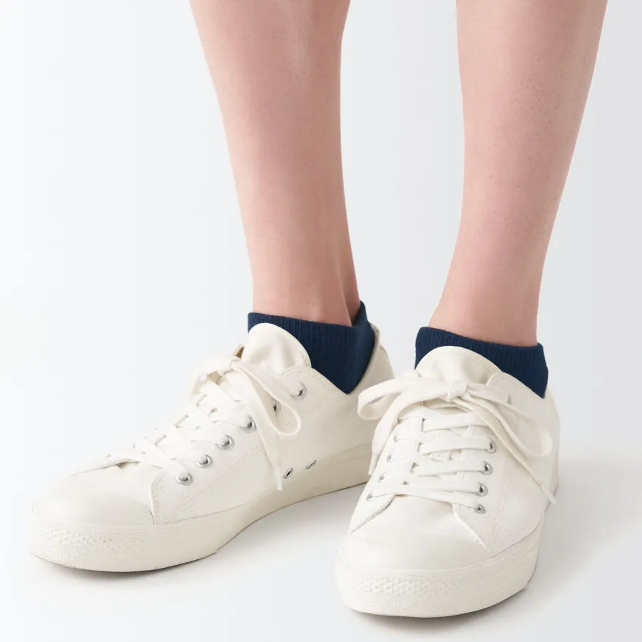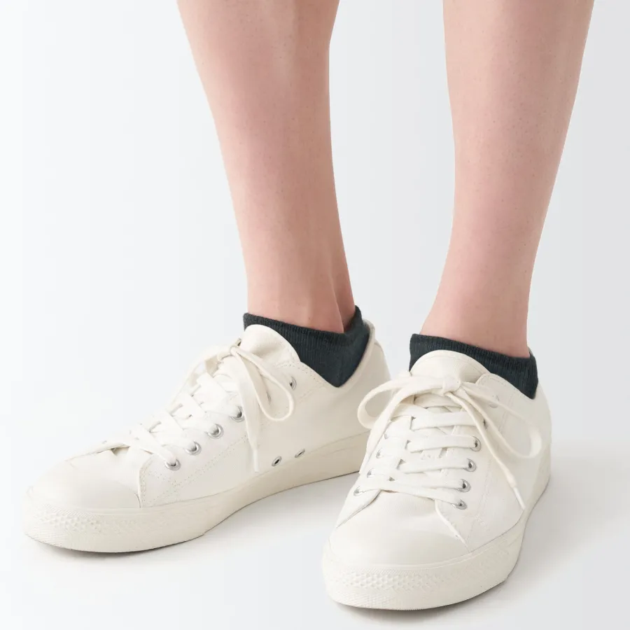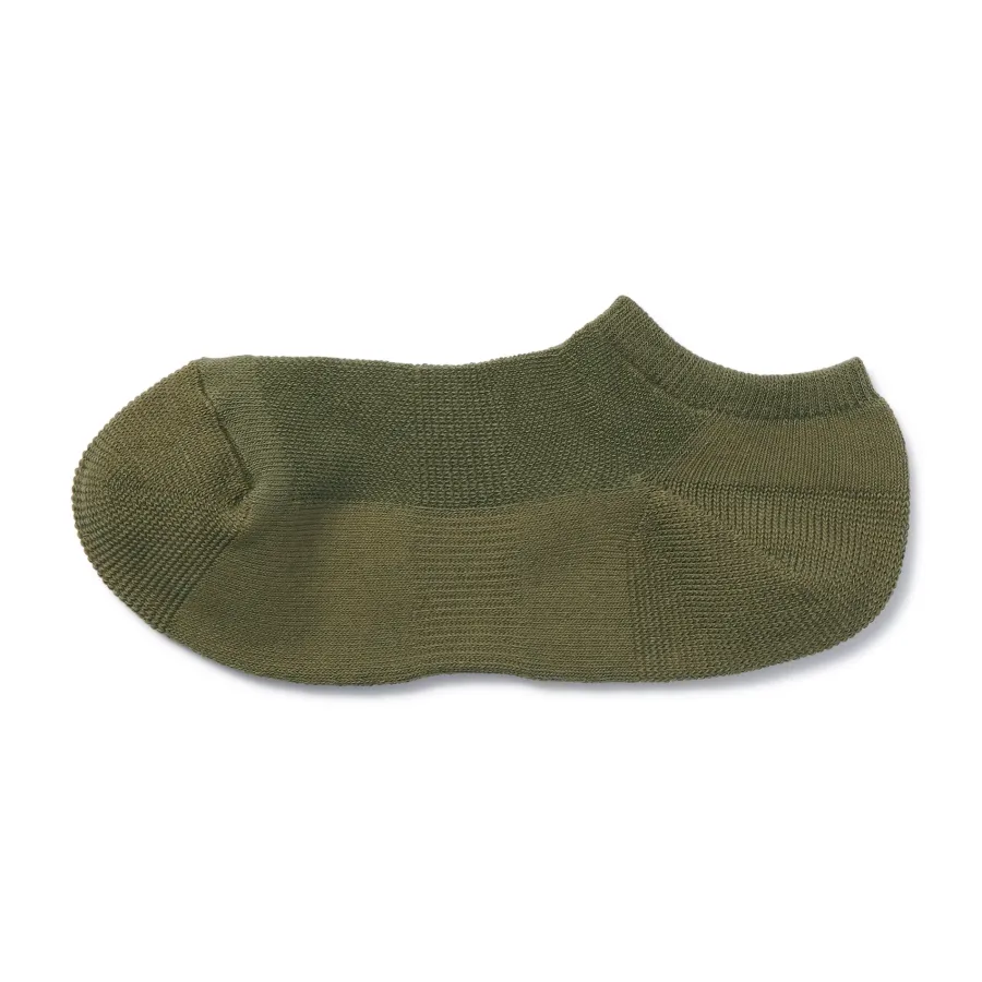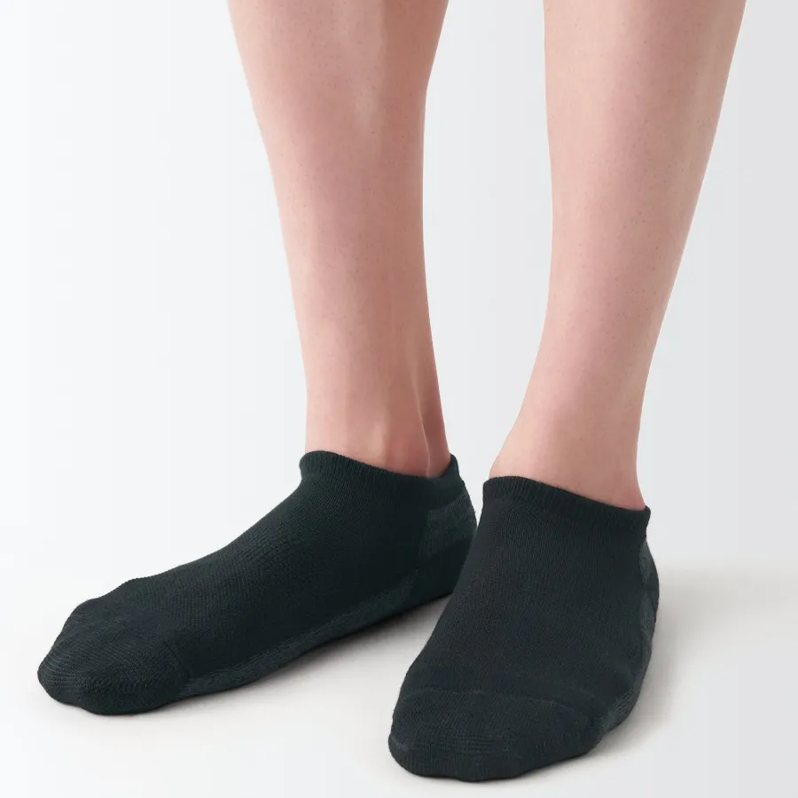 As the heel is at a right angle, the socks are knitted at a right angle so they can wrap comfortably around the heel and prevent the fabric from sagging and slipping off. Smooth textured pile on the sole.
