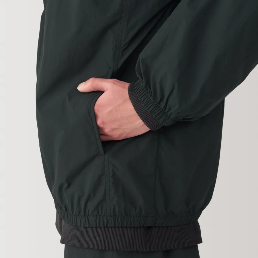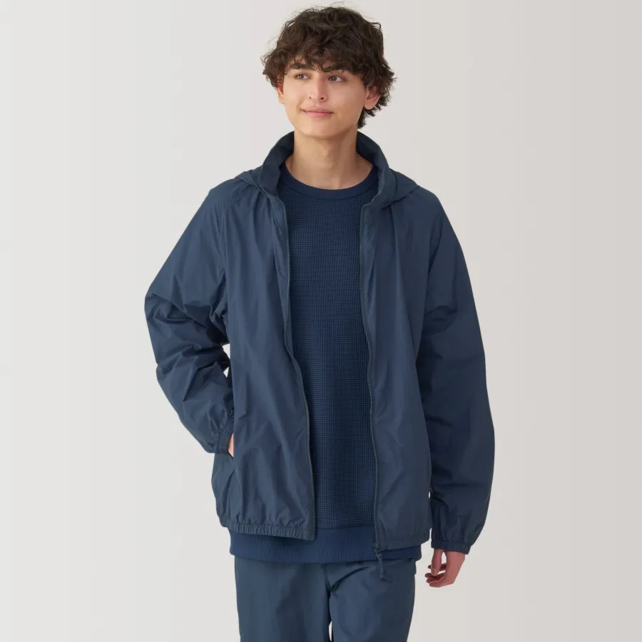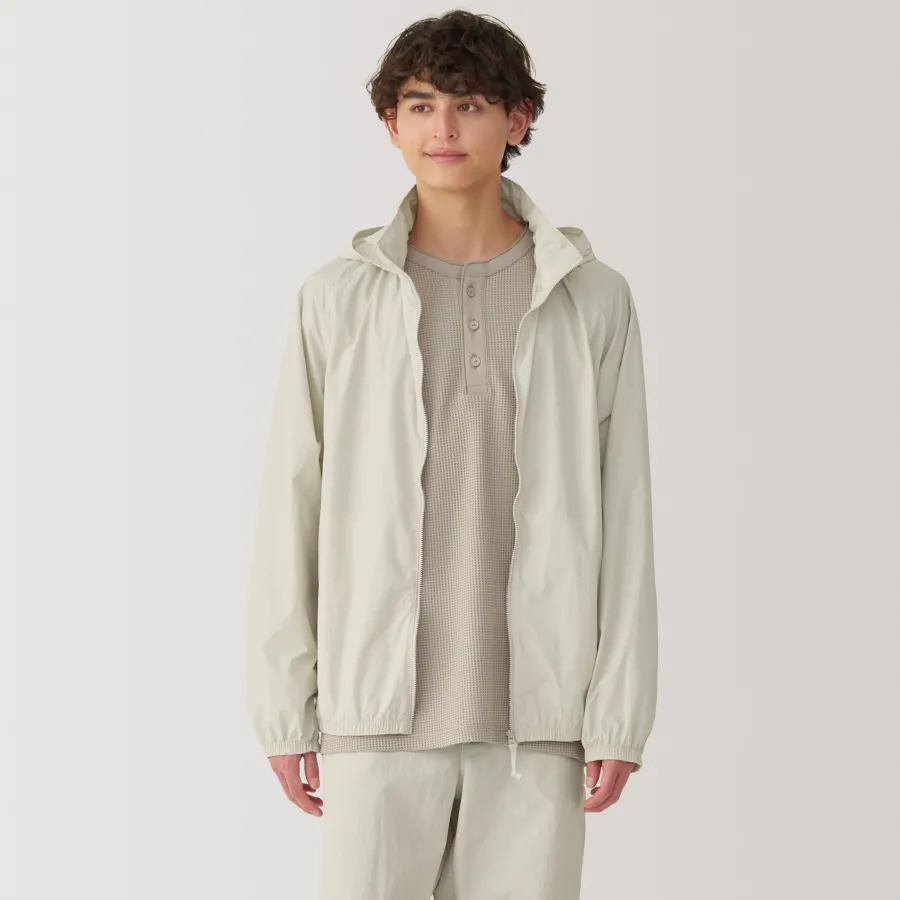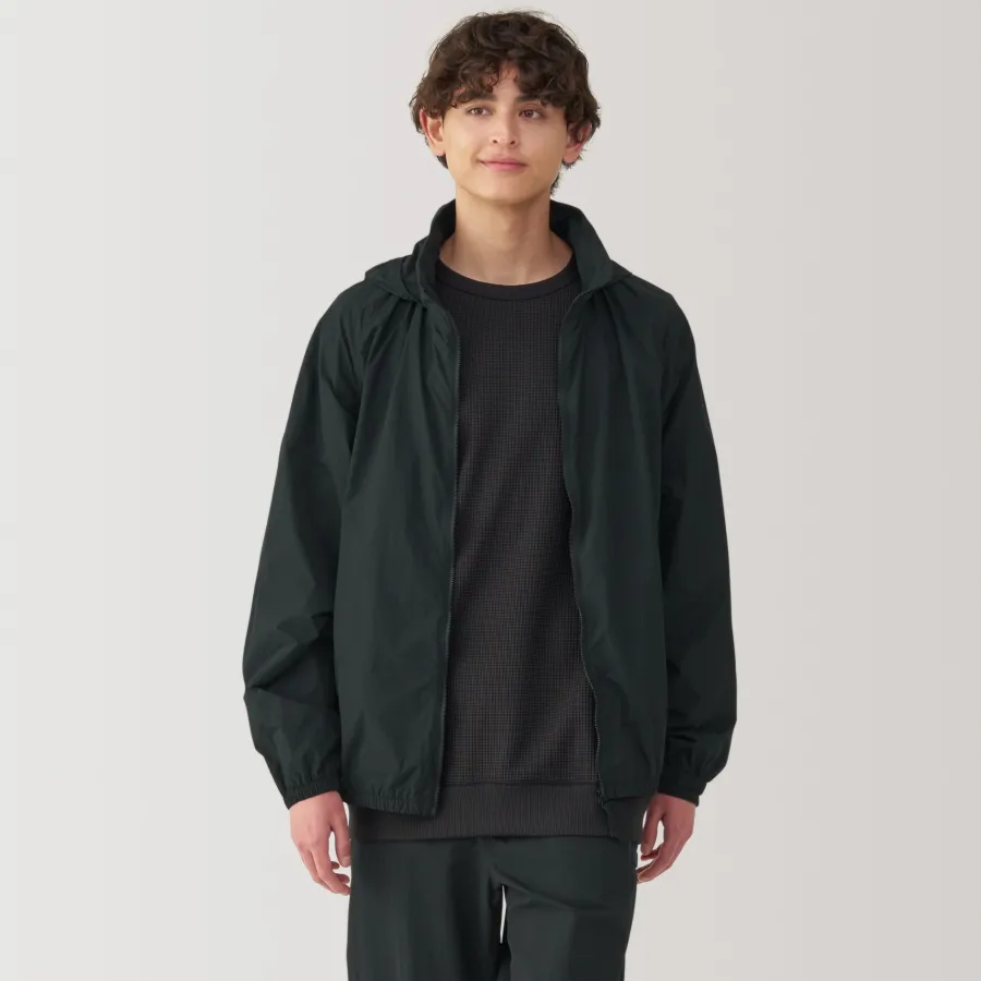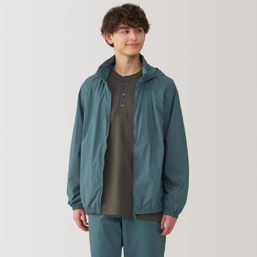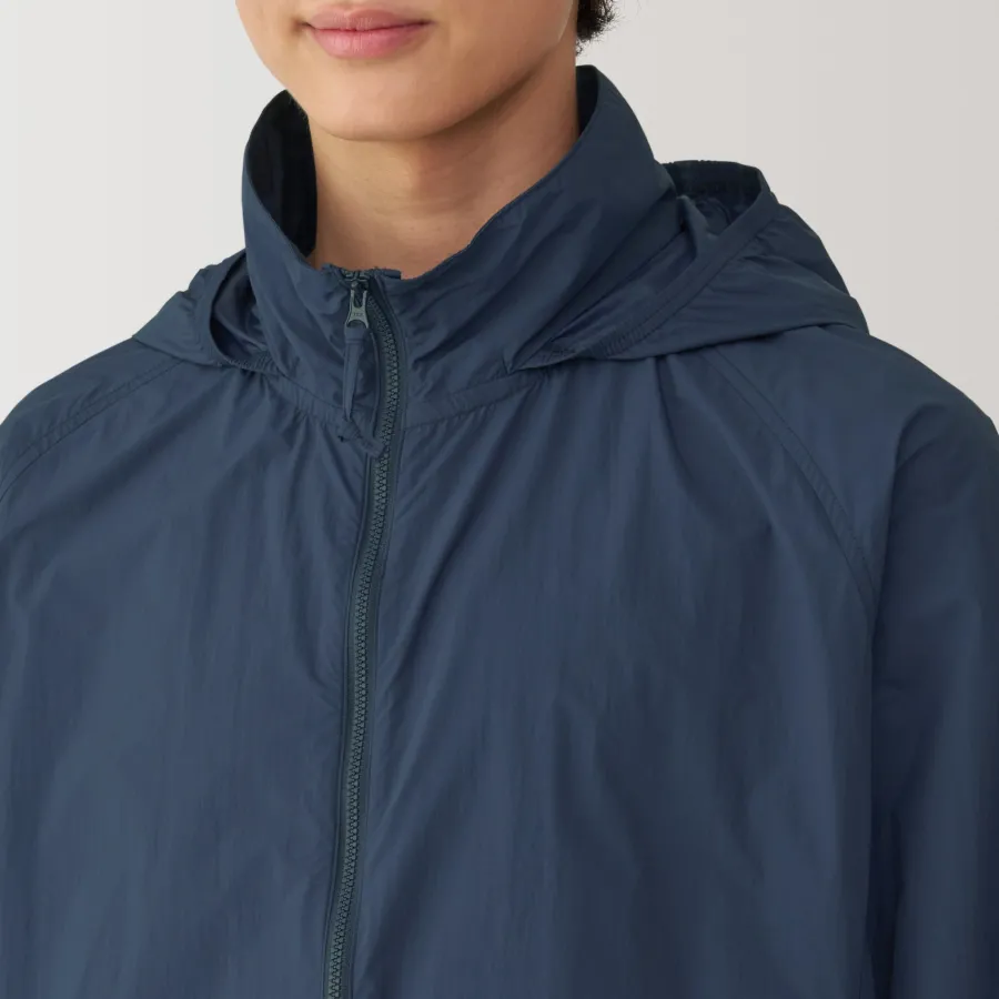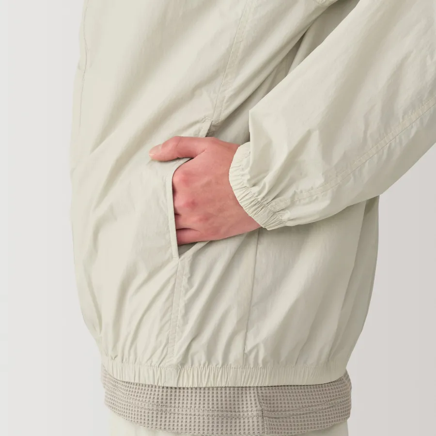 Stay comfortable and dry during outdoor activities with this lightweight versatile windbreaker, which is both water-repellent and windproof. It can be folded up into the pocket for compact storage, making it convenient to carry while traveling so you can be prepared for the weather anywhere you go. The hood can also be tucked away into the stand collar, allowing for different styling options.