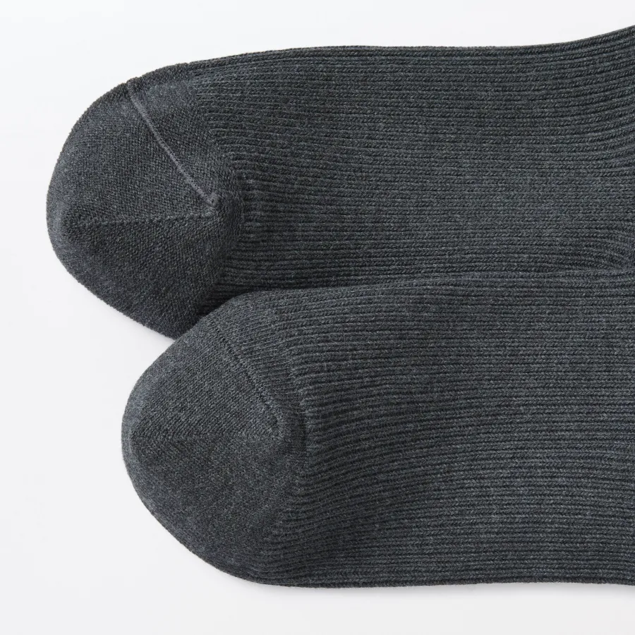 These socks are knitted to be reversible, with identical inner and outer layers, making it easier to put them on without having to turn them inside out. The heel of the sock is knitted at a right angle to wrap comfortably and naturally around the heel without slipping down.