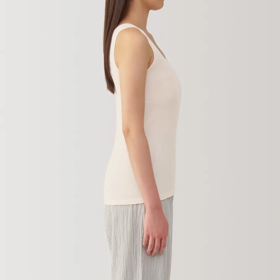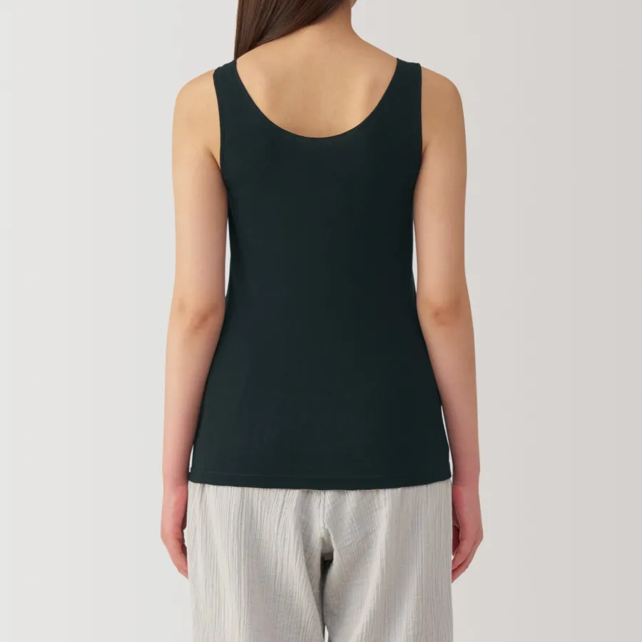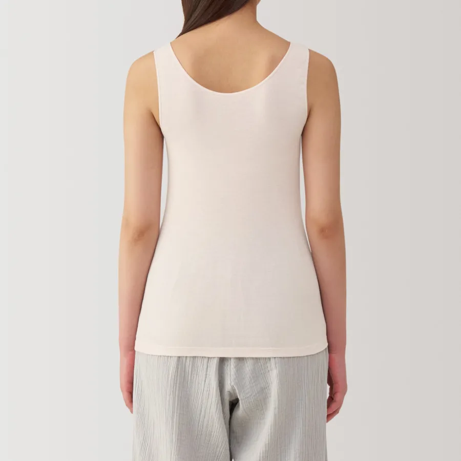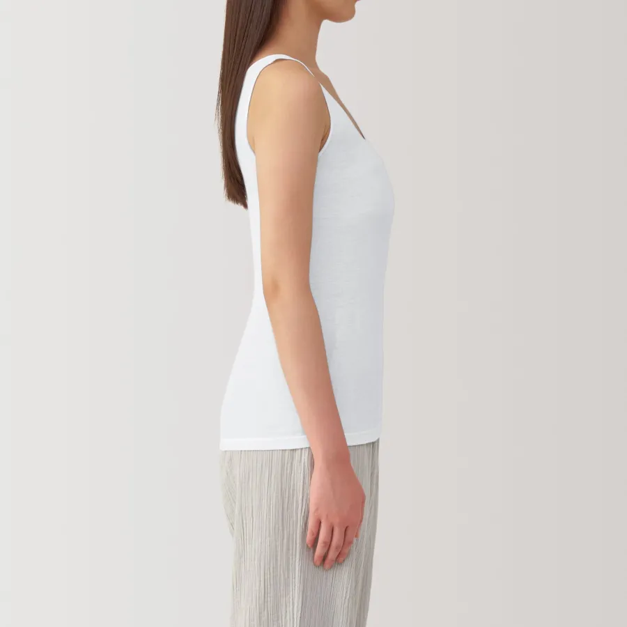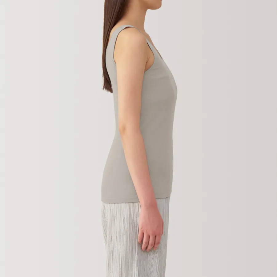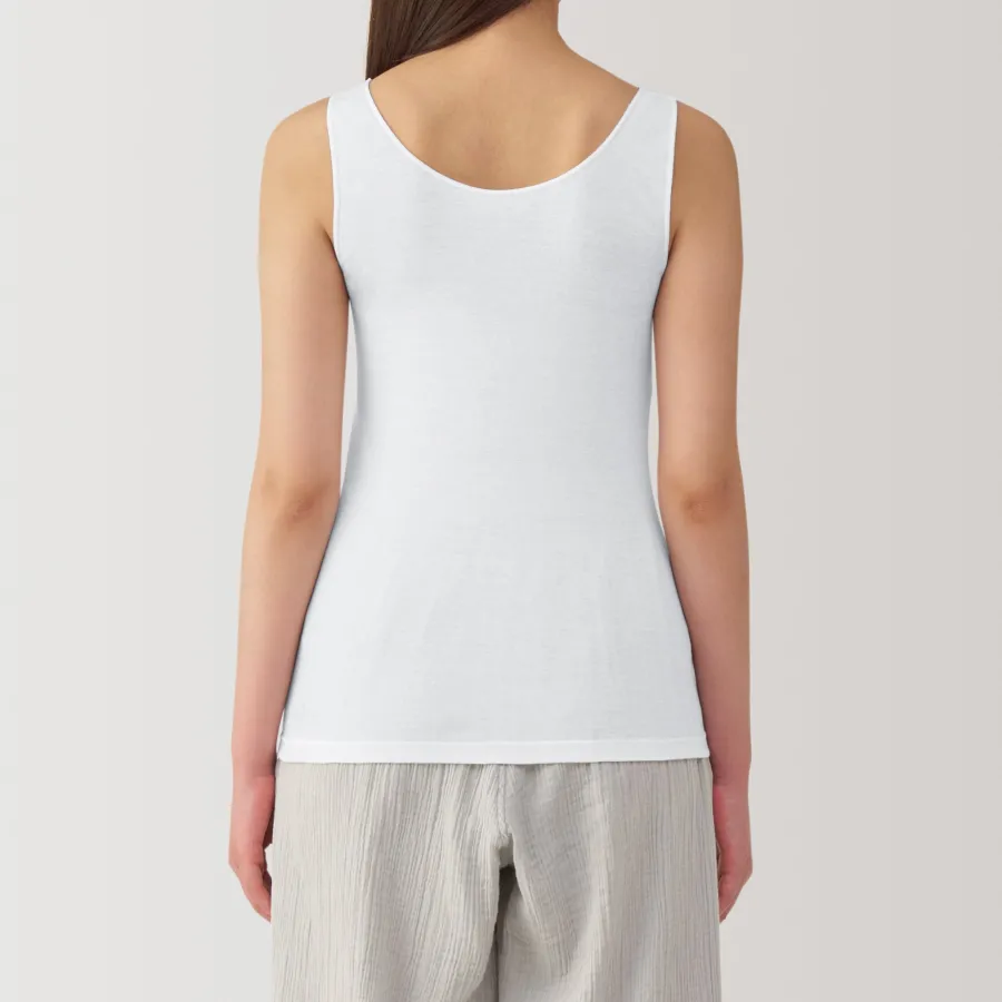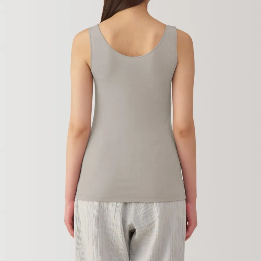A lightweight tank top made from a smooth, breathable organic cotton material that feels cool on the skin, making it comfortable to wear even in warm weather. To prevent irritation, care labels and tags are printed on the inner side of fabric.