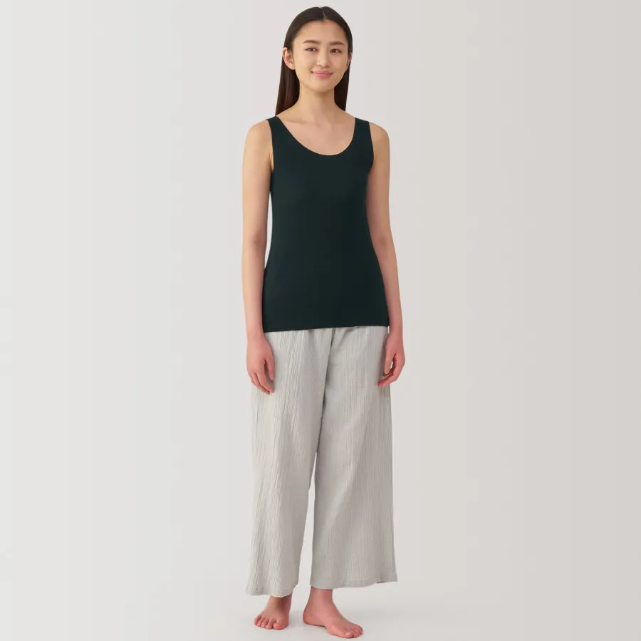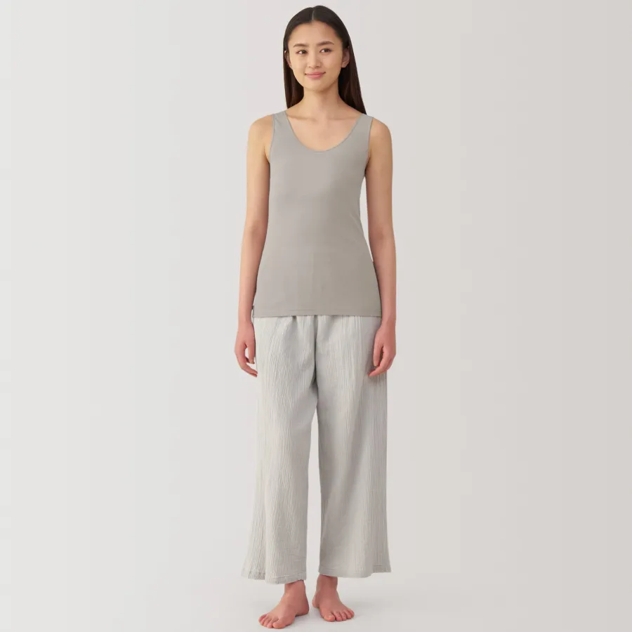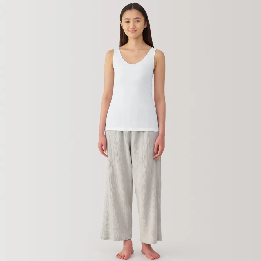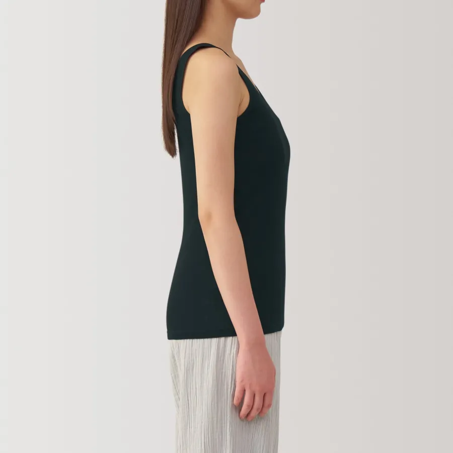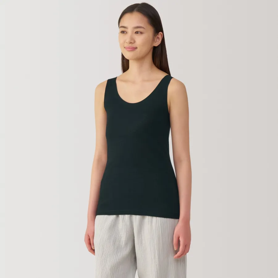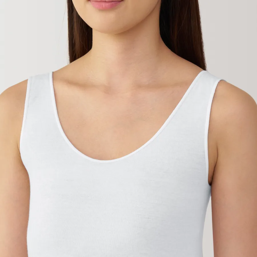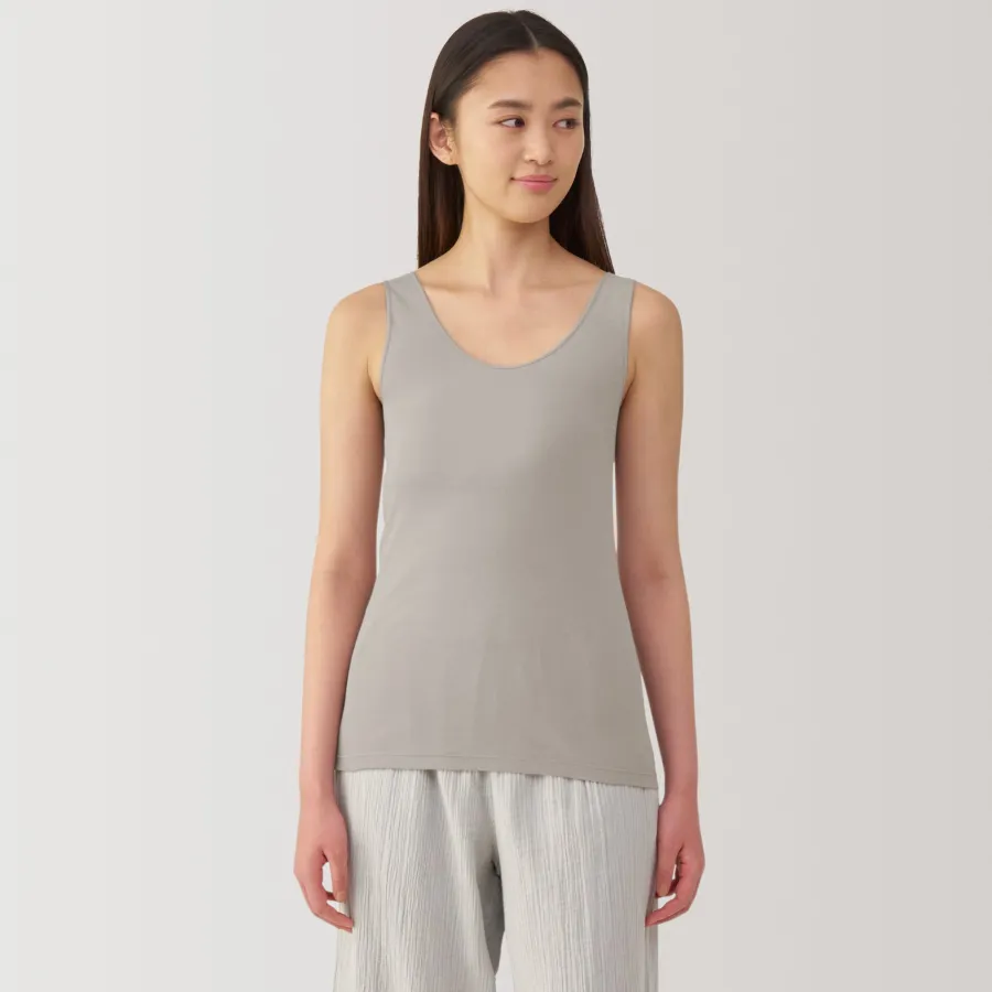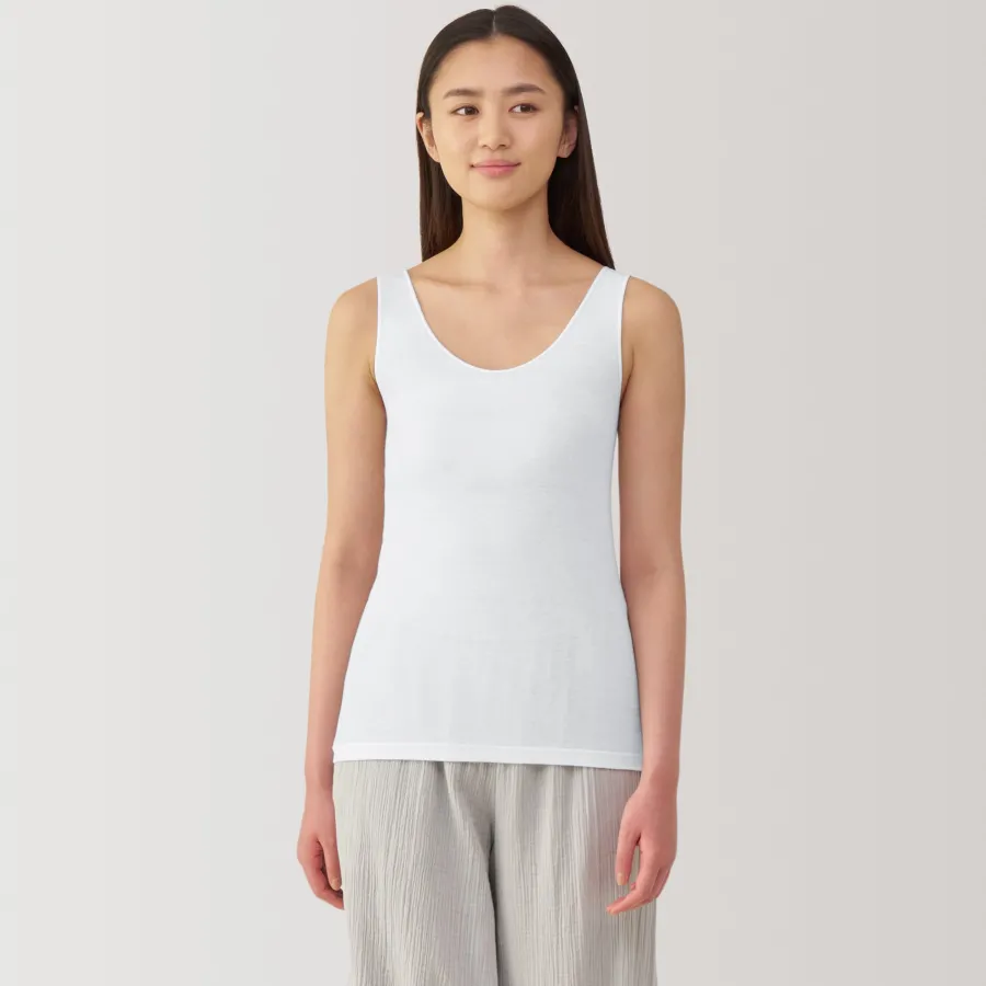 A lightweight tank top made from a smooth, breathable organic cotton material that feels cool on the skin, making it comfortable to wear even in warm weather. To prevent irritation, care labels and tags are printed on the inner side of fabric.