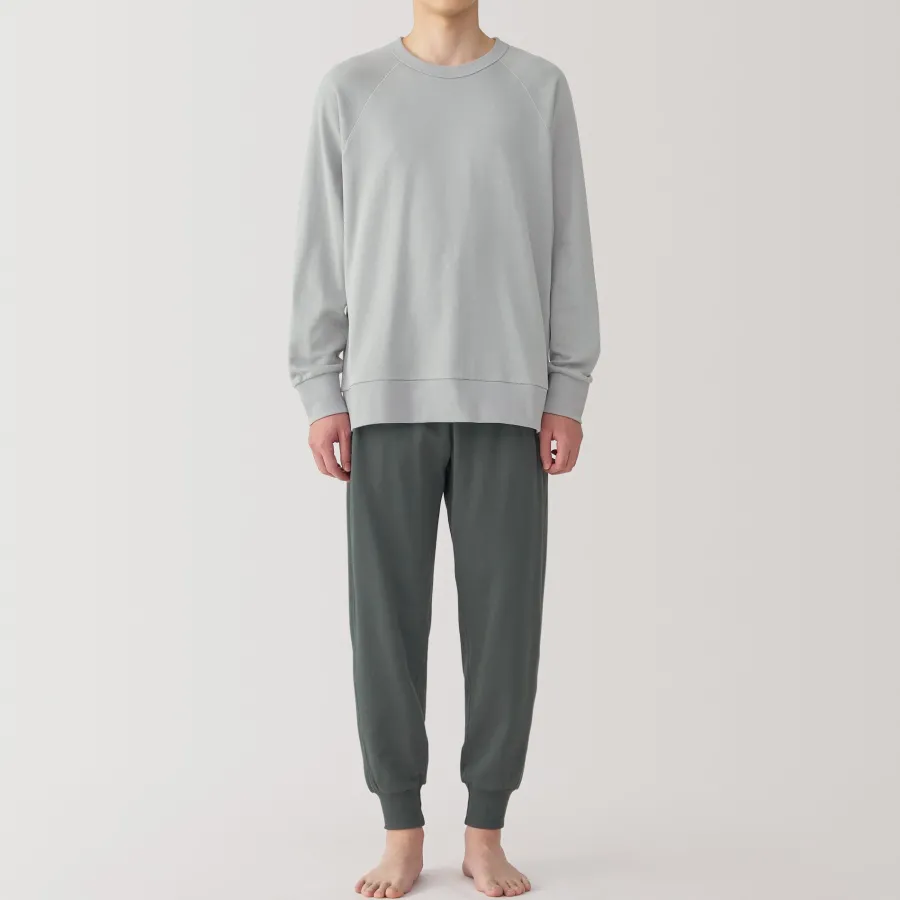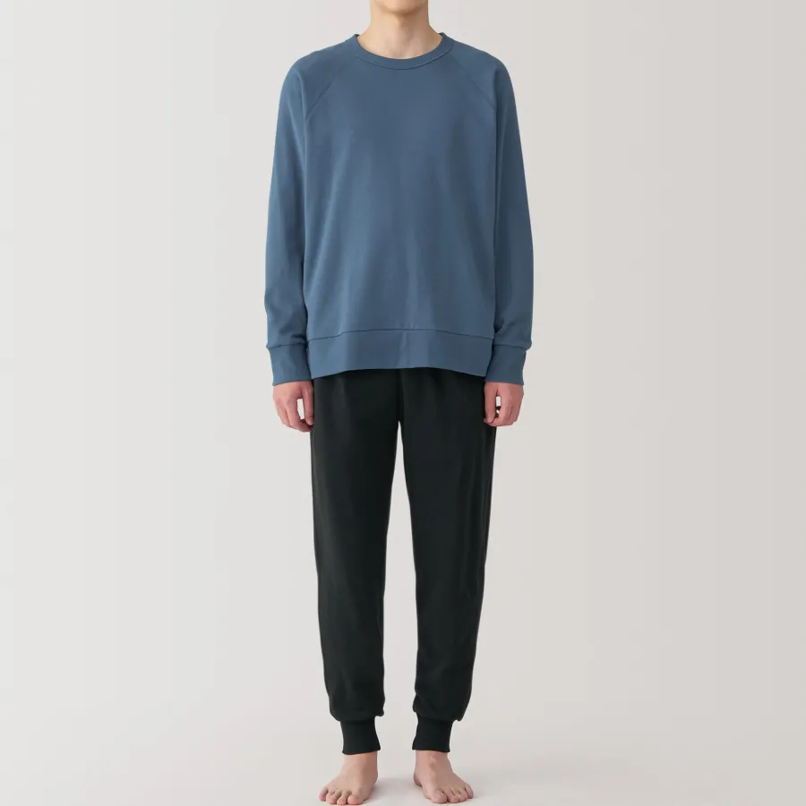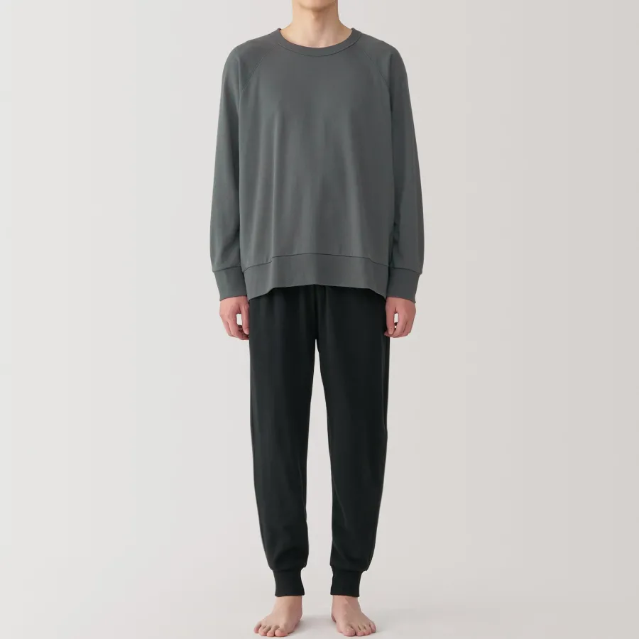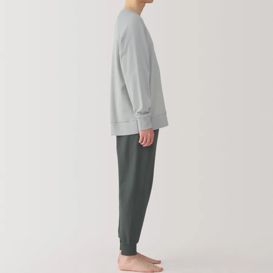 This cotton loungewear set is made with loosely twisted yarn for a soft and airy texture that’s comfortable to wear all day. The top is constructed without side seams for comfort. This set embodies the Japanese concept of ‘one-mile wear’, which focuses on casual outfits that are comfortable enough for lounging at home, but also stylish enough for a short outing in the neighborhood.