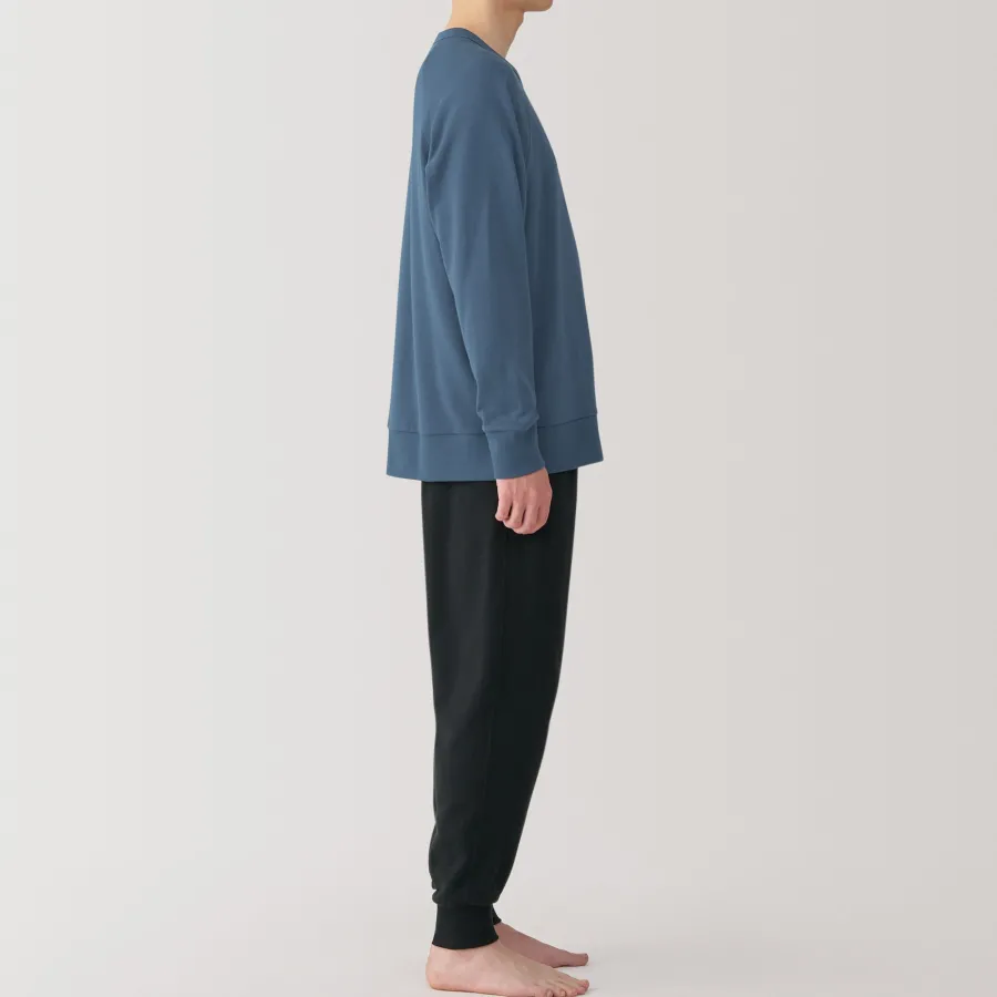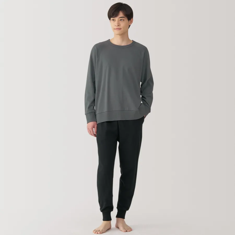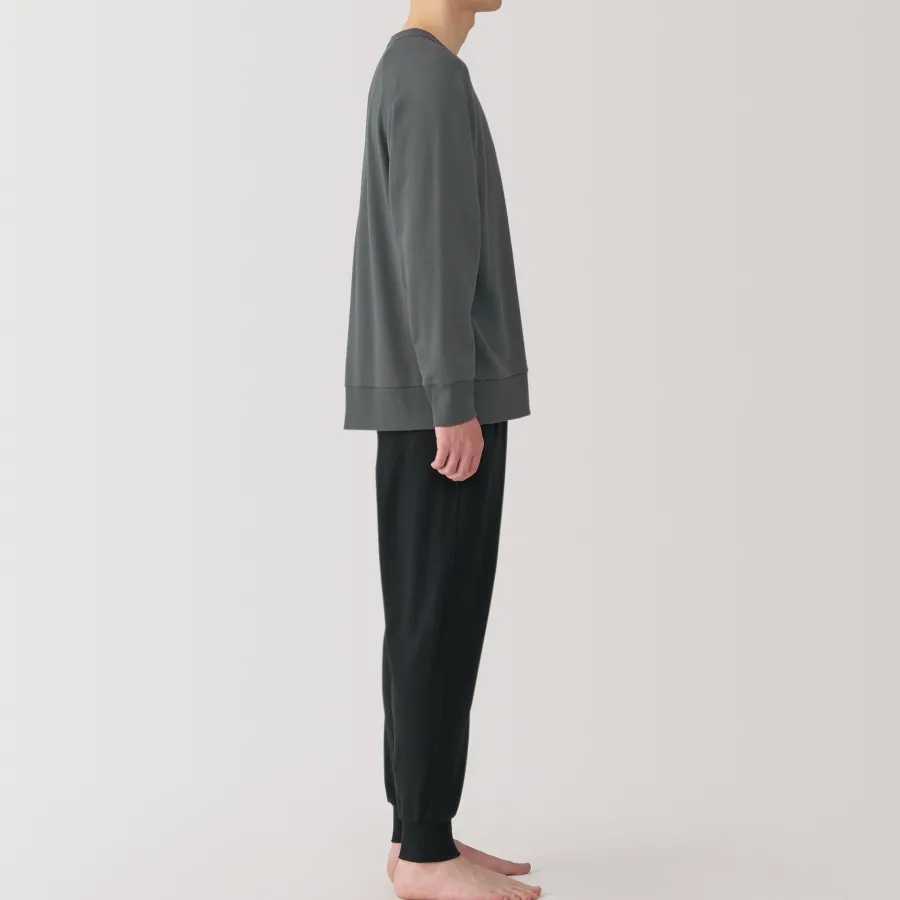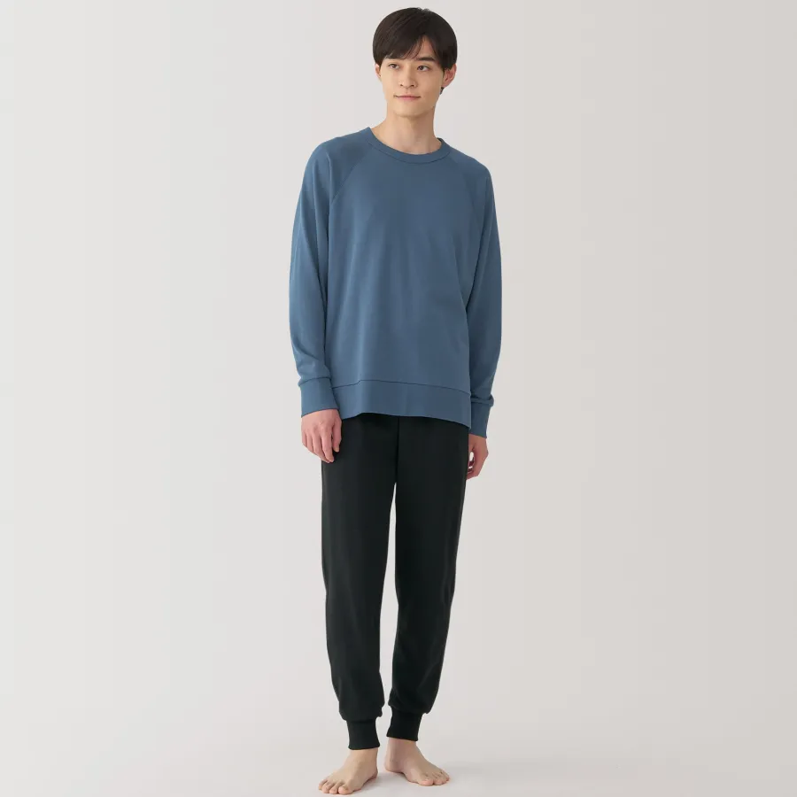 This cotton loungewear set is made with loosely twisted yarn for a soft and airy texture that’s comfortable to wear all day. The top is constructed without side seams for comfort. This set embodies the Japanese concept of ‘one-mile wear’, which focuses on casual outfits that are comfortable enough for lounging at home, but also stylish enough for a short outing in the neighborhood.