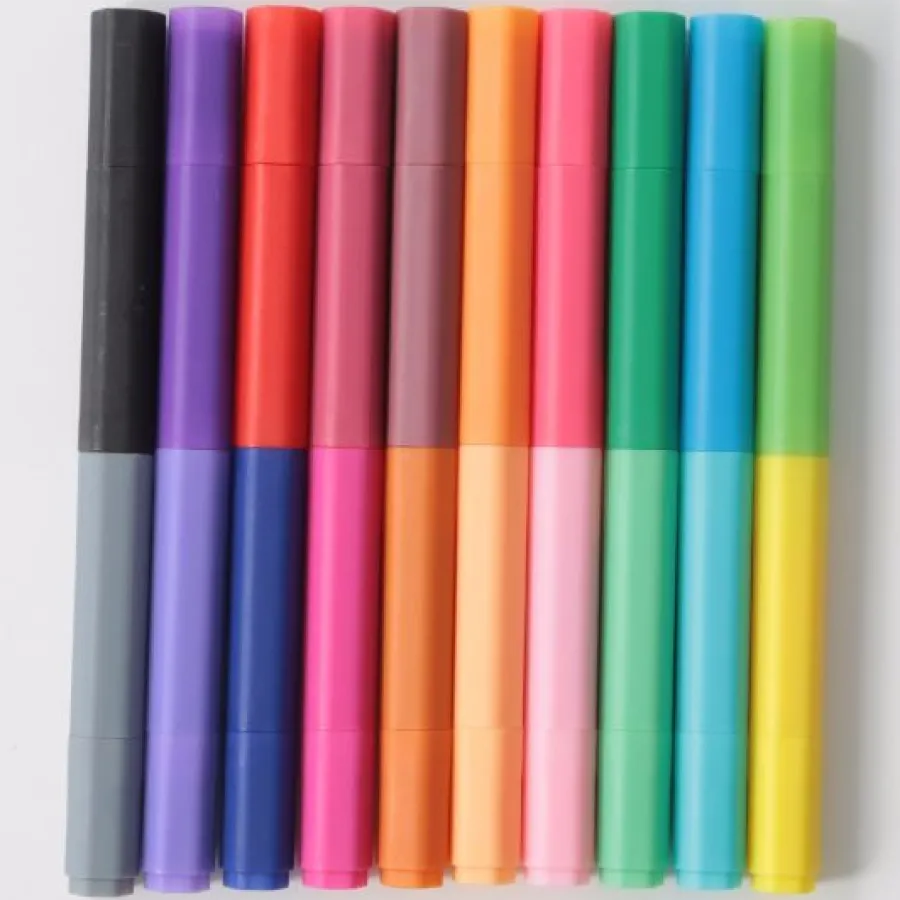 Water-based markers with 20 bright colors to choose from. The bullet-tip design is great for multiple purposes. Comes in a set of 10 double-ended markers.